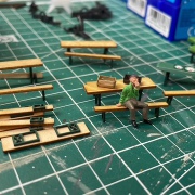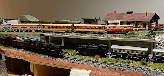 Am ersten Freitag im Monat geht unsere Anlage immer in den Vollbetrieb, da wird alles getestet ob auch alles richtig funktioniert, hier eine nette Sequenz daraus, Zugkreuzung samt Schmalspur ....... es entsteht gerade ein Heizhausfest, erste Details sieht man schon ......